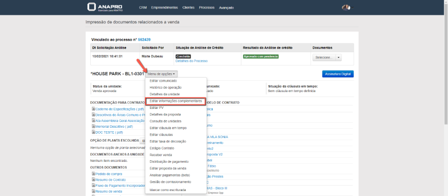Após preencher, clique em "Salvar". Voltará para a tela de impressão de documentos, basta clicar para gerar novamente o documento em questão, já estará atualizado com a informação preenchida.