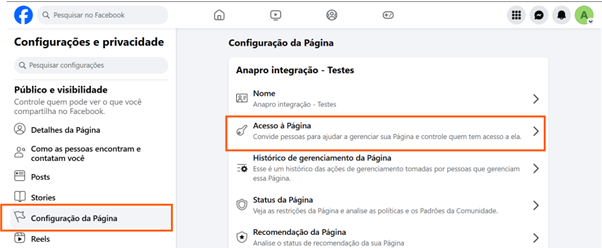 3) Depois é só clicar em “Configuração da Página” e no menu Acesso à Pagina, basta clicar em “Ver”.